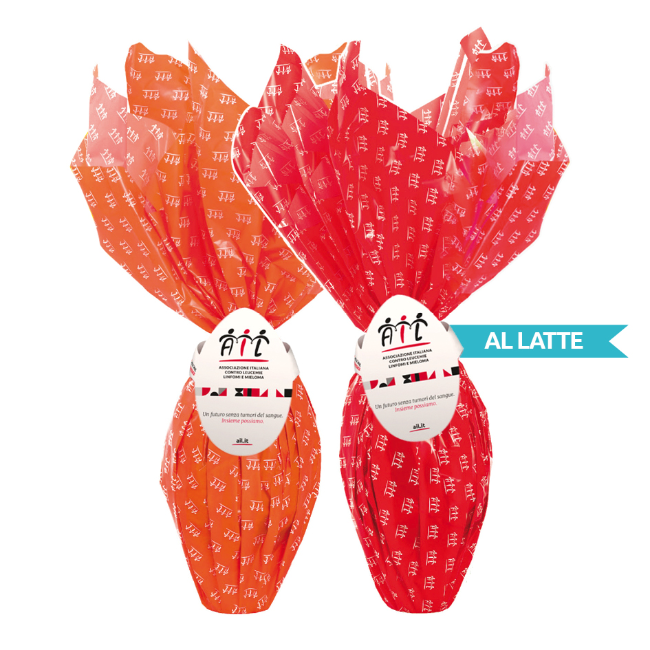 Le Uova di Pasqua maxi al latte sono senza glutine e disponibili nei colori arancione e rosso.