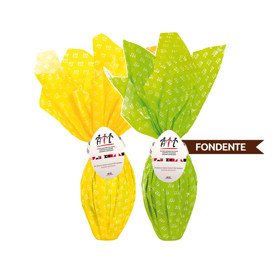 Le Uova di Pasqua fondenti, sono senza glutine e disponibili nei colori verde e giallo.